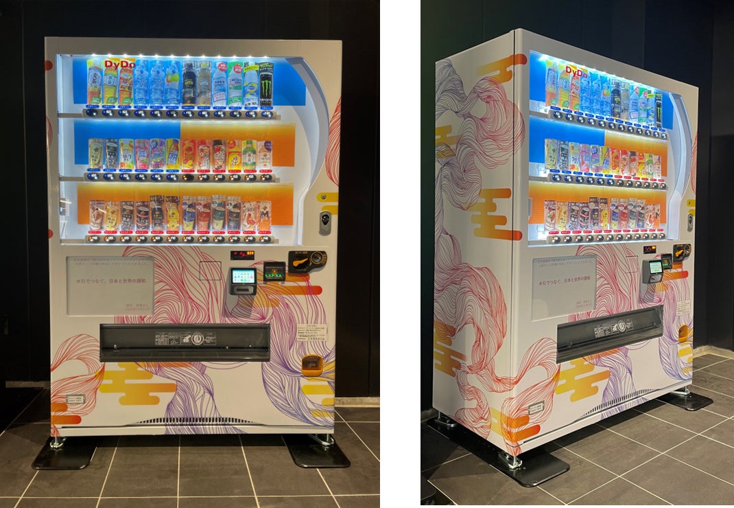 2つのテーマ(新世代の太陽の塔のように万博のシンボルとなるようなデザイン・子どもたち向けの優しげであたたかみのあるデザイン)に全30点が寄せられ、最優秀賞の2点を夢洲駅の自販機デザインとして採用し、この度、当社が具現化し、設置の運びとなりました。
