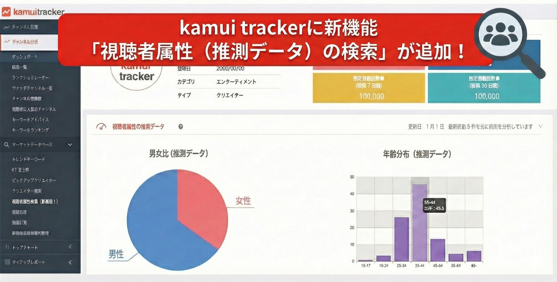 YouTubeデータ分析ツール『kamui tracker』、視聴者属性からチャンネルを探せる機能を実装