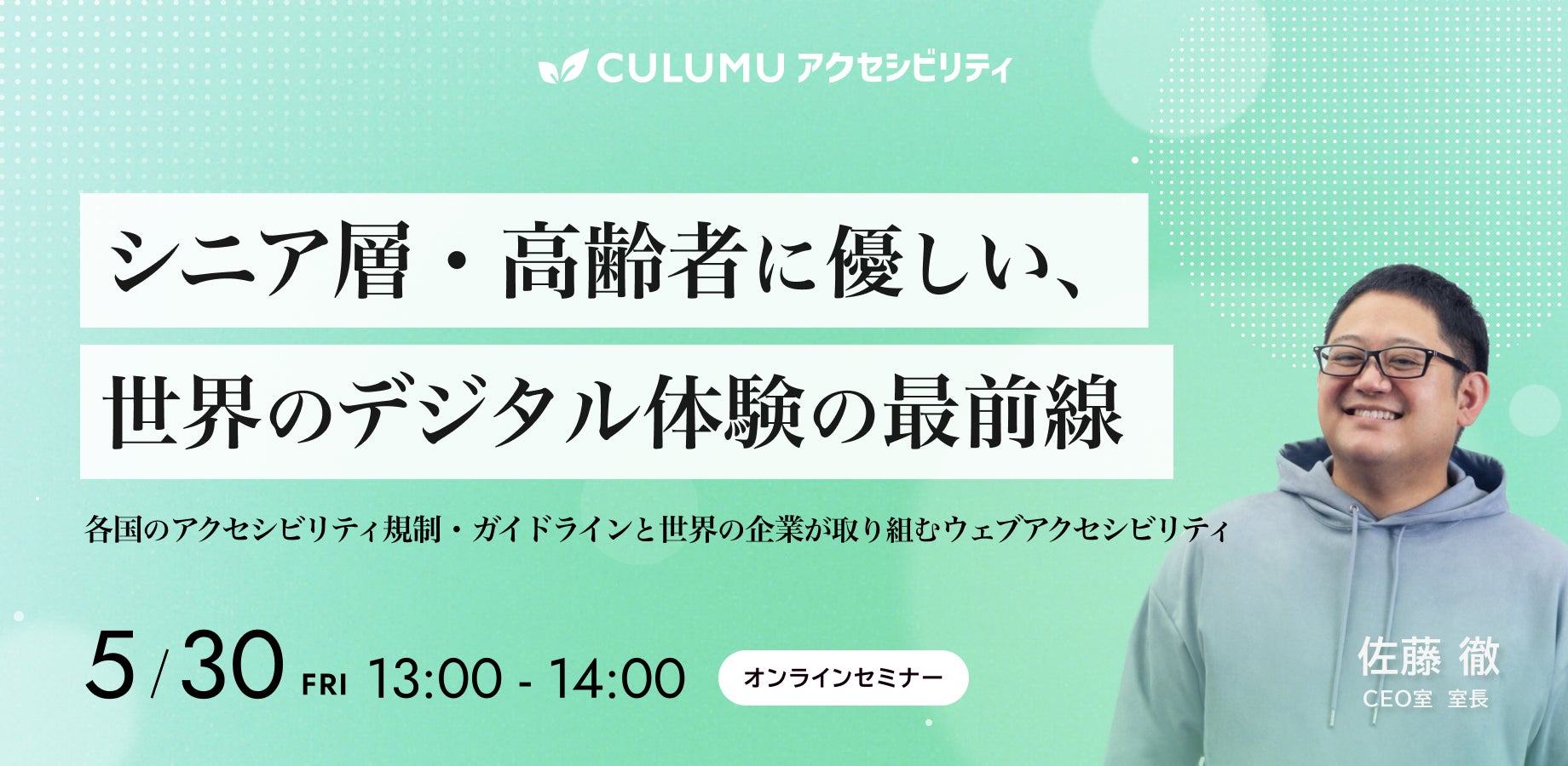 【5/30 セミナー開催】世界の事例に学ぶシニア向けデジタル体験とアクセシビリティ 〜視認性・操作性の改善とブランド価値向上の手法〜