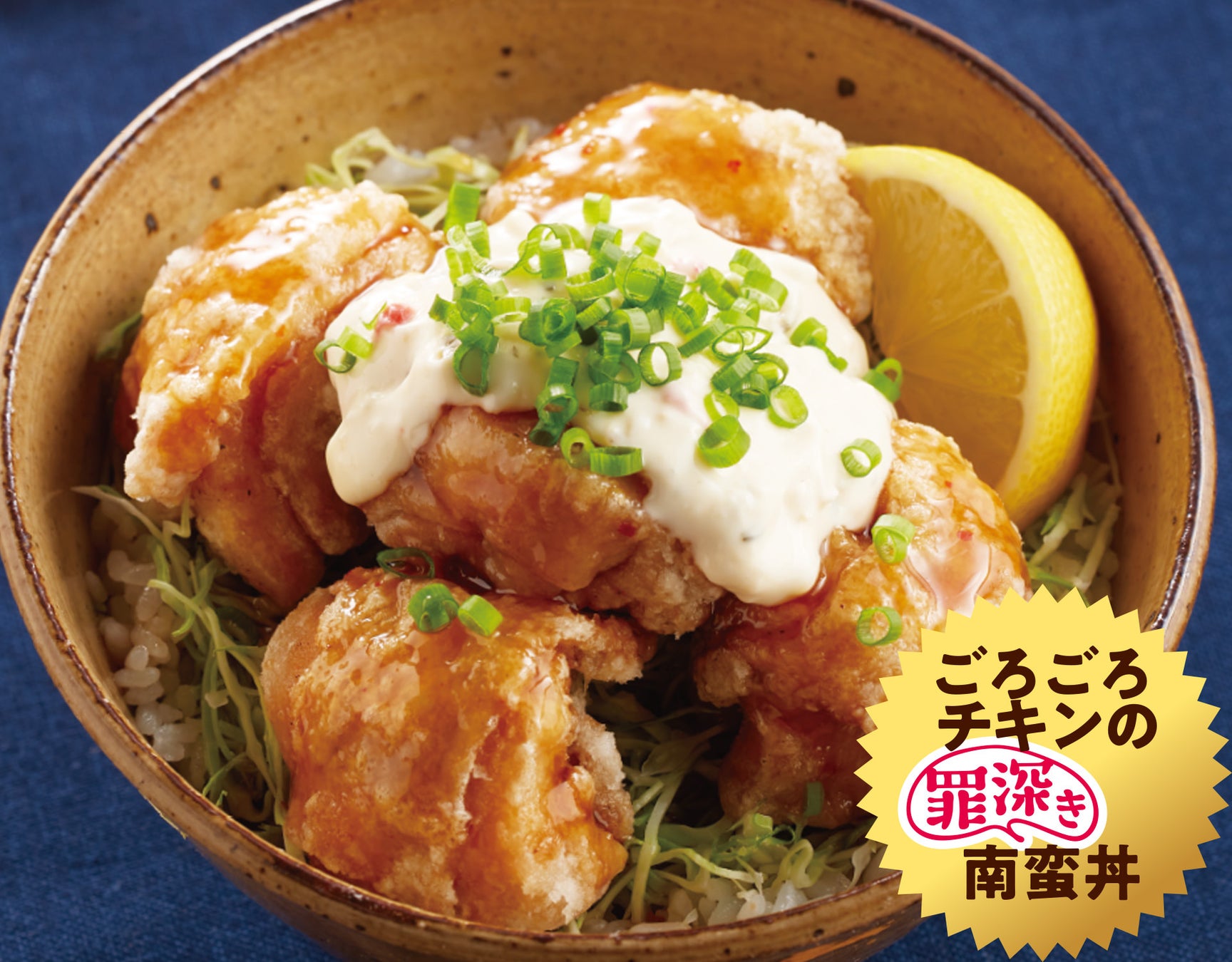 ジューシーな揚げ鶏にたっぷりのタルタルソースが絡む「背徳感」いっぱいの丼メニューです。