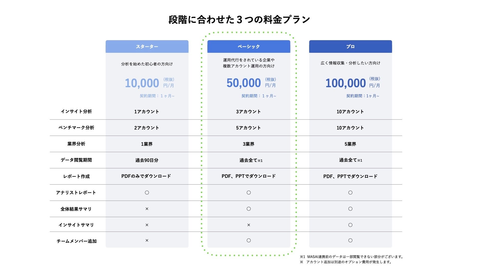 また、これまでベーシック、プロプランのみで提供していた「ベンチマーク分析」機能が、全プランにて利用できるようになりました。