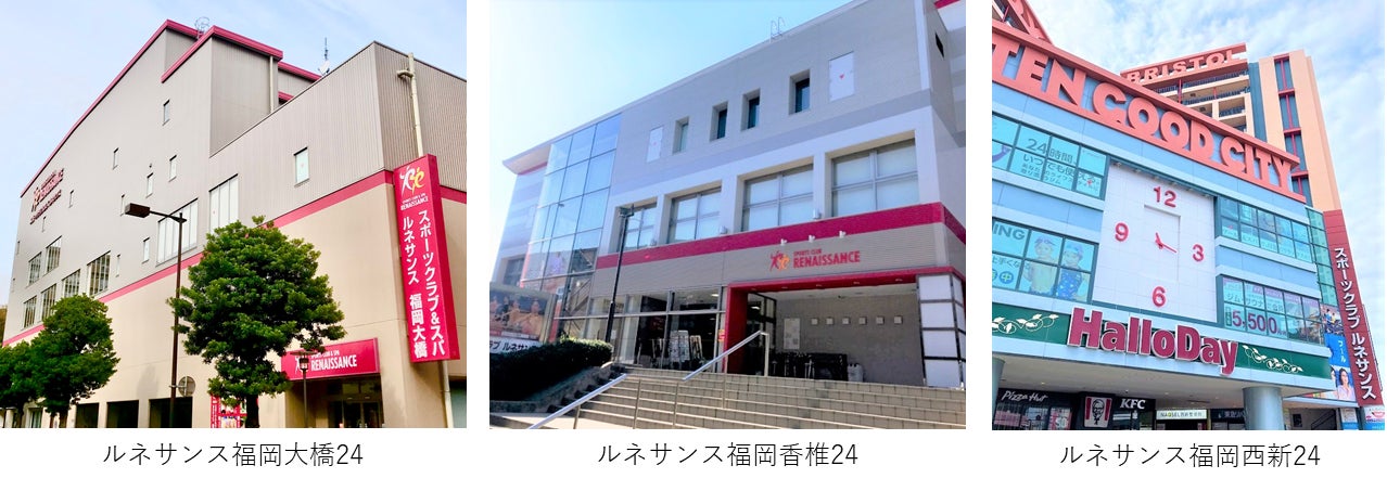 当社が福岡市内で運営する「スポーツクラブ&スパ ルネサンス 福岡大橋24」「スポーツクラブ ルネサンス 福岡香椎24」「スポーツクラブ ルネサンス 福岡西新24」では、これまで長きにわたり地域の皆様の健康づくりをサポートしてまいりました。