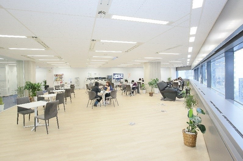 お昼休憩に利用する従業員が多く、電子レンジなどの家電も充実しています。マッサージチェアも7台置いてあり、自由に利用できリフレッシュできる空間となっており、従業員の労働環境に配慮したスペースになっています。