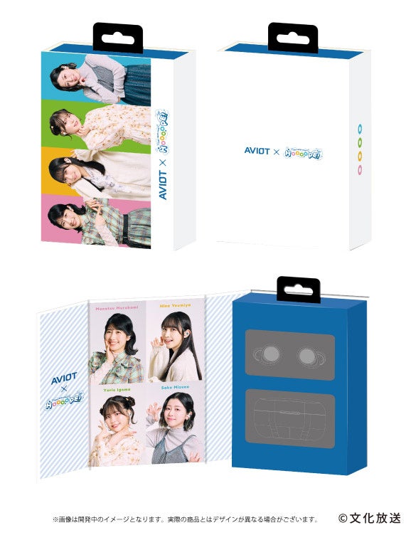 累計出荷台数約15万台*のAVIOTのヒットモデル、“Vシリーズ”の最新機種「TE-V1R」をベースモデルに採用した、『A&G NEXT STEP HOOOOPE!』のパーソナリティ4人の魅力が詰まった特別仕様の完全ワイヤレスイヤホン。