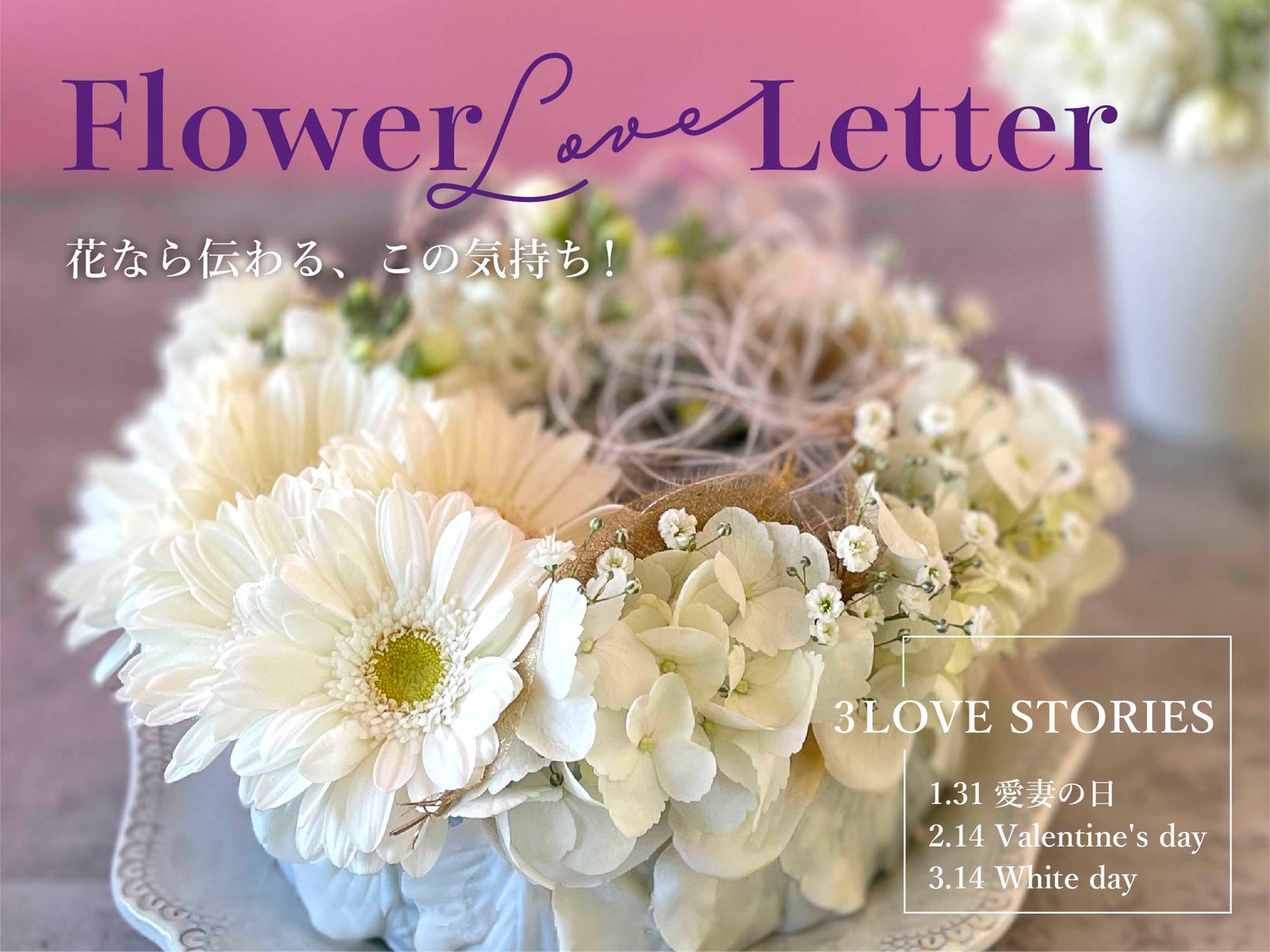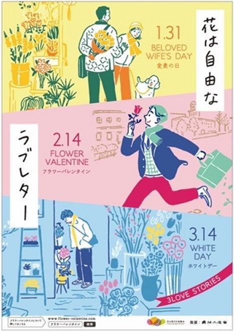 1月31日(水)の愛妻の日、2月14日(水)のバレンタインデー、3月14日(木)のホワイトデーの3つの記念日を「3 LOVE STORIES」として大切な人へ花を贈る文化を社会に浸透させるため、花き業界の企業や団体が参画する「花の国日本協議会」が中心となり行っているキャンペーンです。