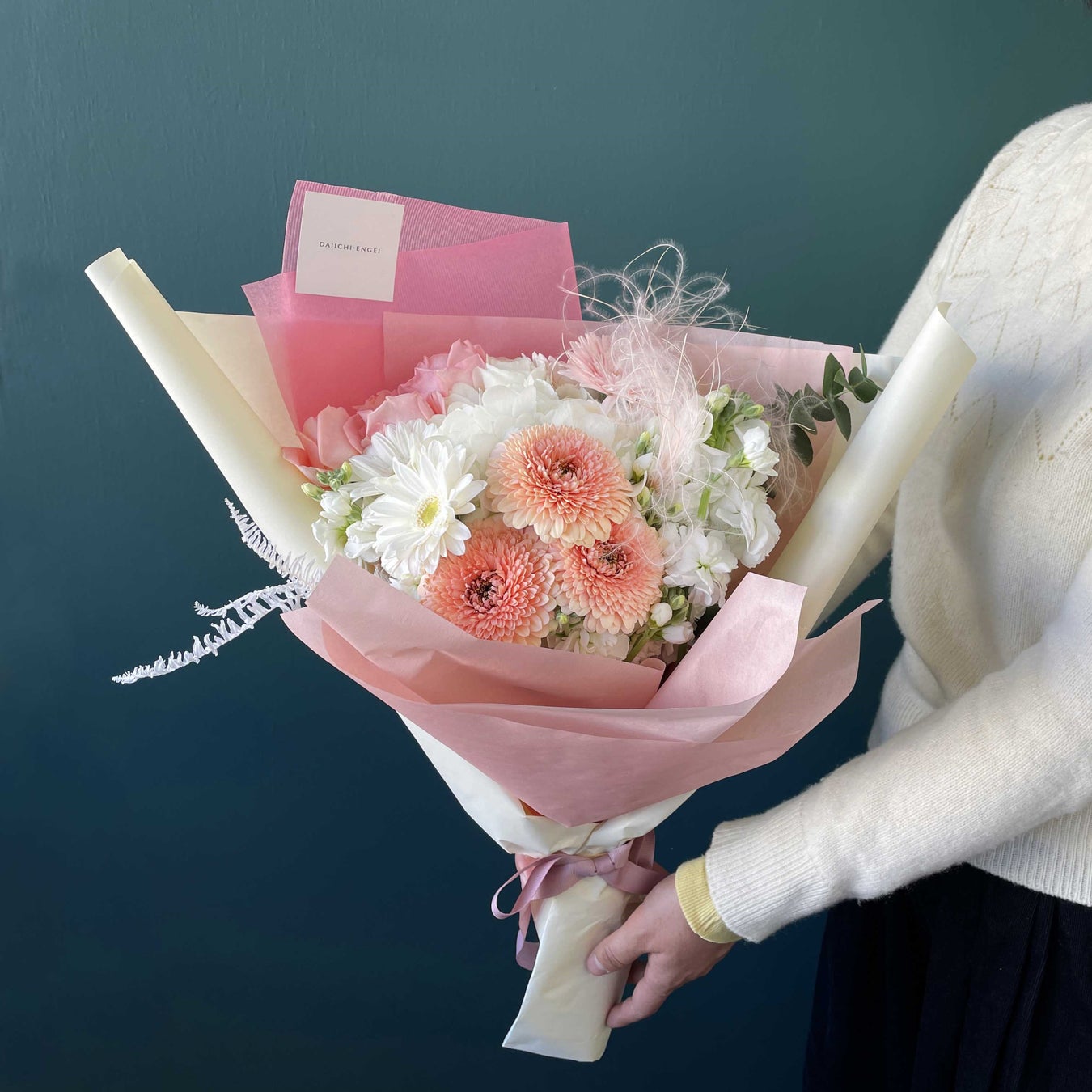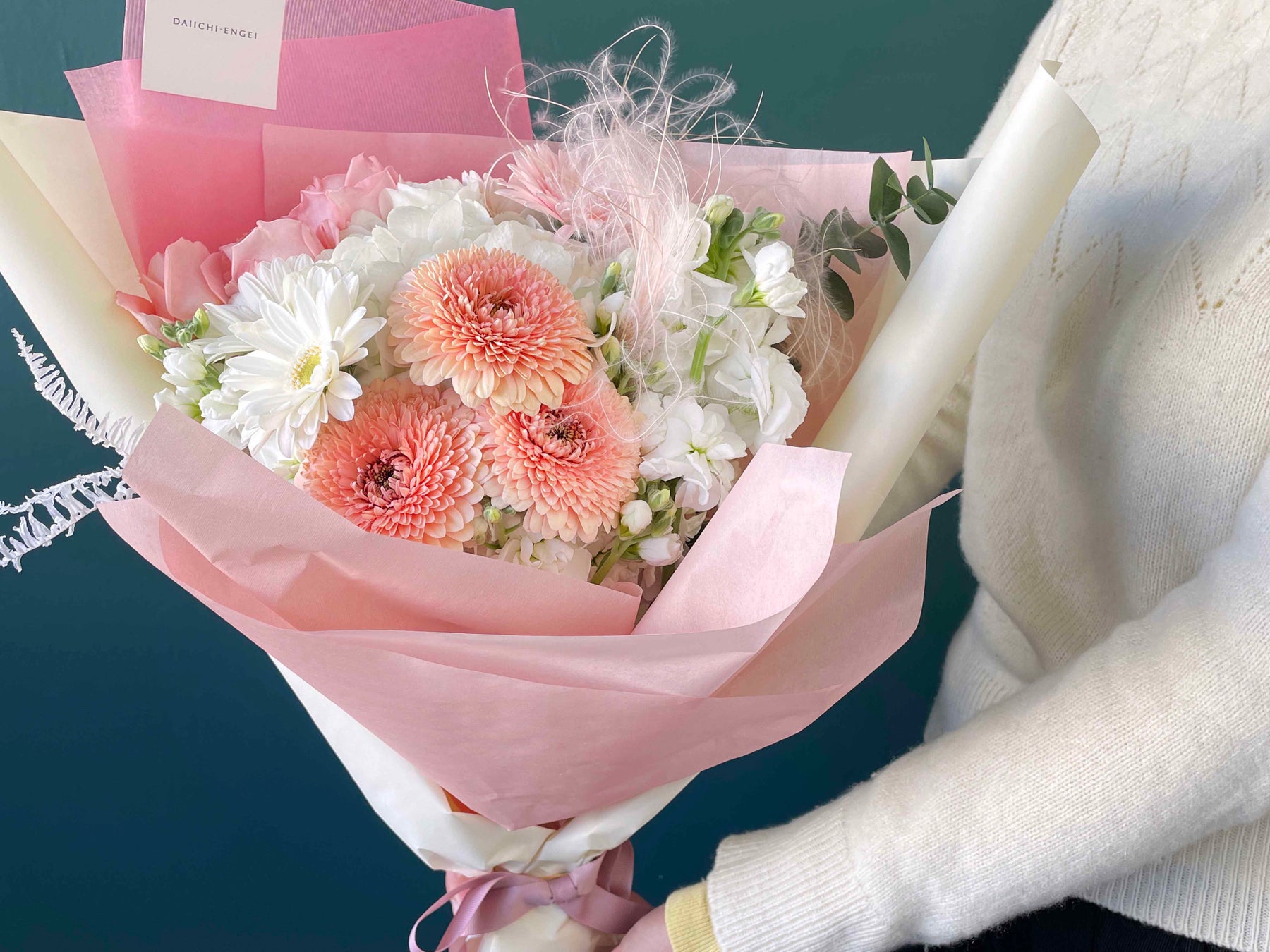 「私の愛する人」という気持ちを込めて、甘いカラーのブーケを贈りましょう。