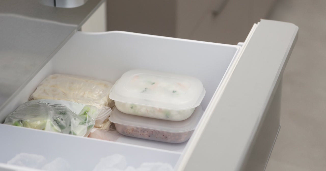 「極 冷凍ごはん容器」は、ご飯を冷凍保存できる容器です。炊いたご飯を冷凍保存する方が多いことから、電子レンジで温めた際のおいしさに焦点を当て開発しました。ムラなくふっくらとご飯を温められるように、薄く角の丸い形状に。また温めた際、底にセットした「すのこパーツ」の下に余分な水分が落ちて、ご飯のべたつきを防ぎます。