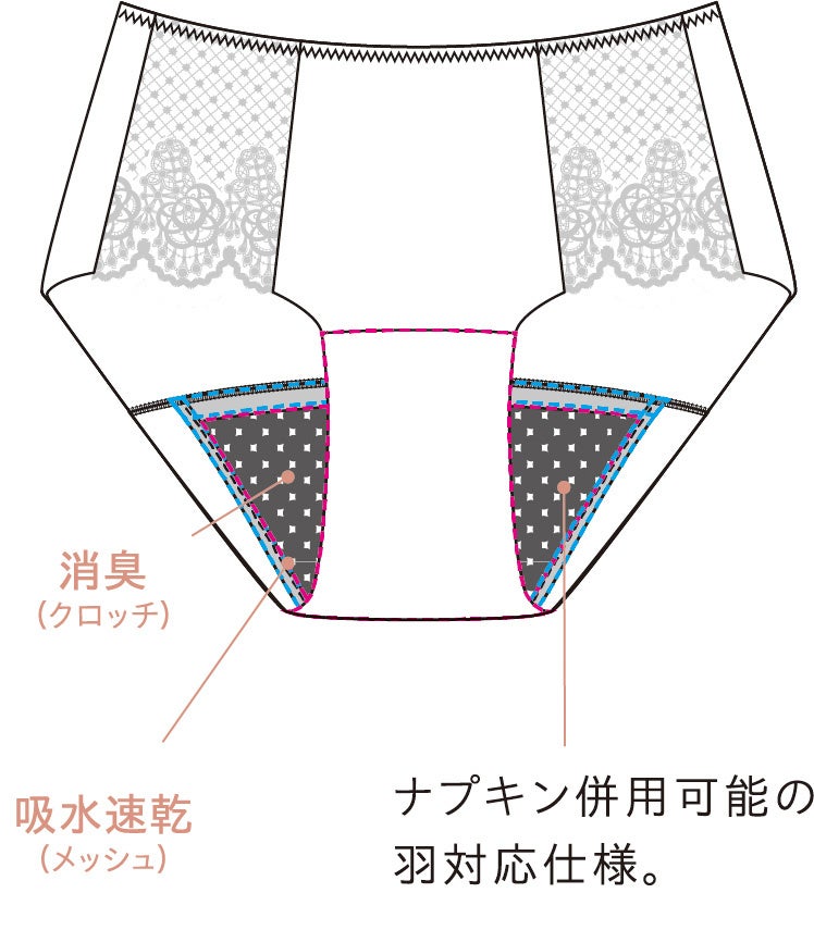 安心感と女性らしさを持ち合わせた吸水ショーツです。