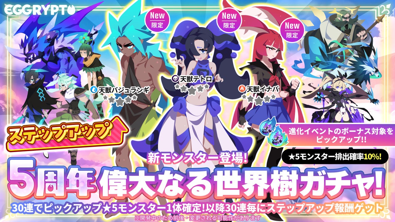 NFTゲーム「EGGRYPTO(エグリプト)」5周年!100連ガチャプレゼントやレアモン進化イベントを含む周年記念キャンペーンを開催!