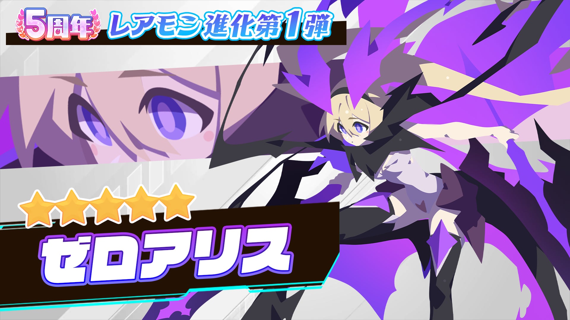 5周年を記念して、★5レアモン「ゼロアリス」の進化先に★6レアモン「[終焉]ゼロアリス」が、★5レアモン「ガイアドラゴン」の進化先に★6レアモン「[森羅]ガイアドラゴン」が追加されます。