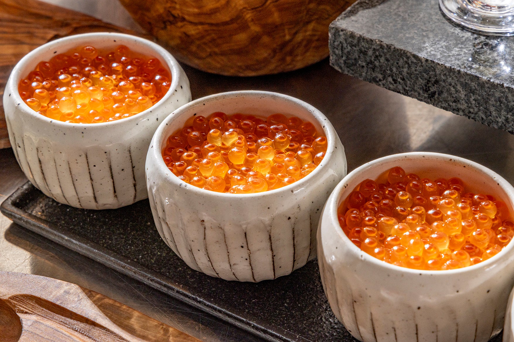 日本料理「風花」より、宝石のように輝くいくらをたっぷりとのせたいくら丼をご用意。旨味が引き立つよう丁寧に仕込んだホテル自家製の醤油漬けは、見た目も味わいも格別な至極の一皿。