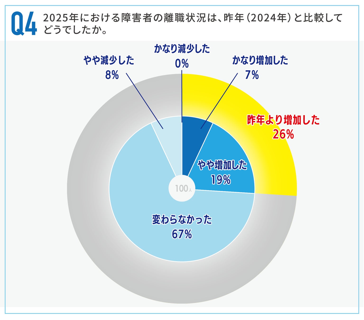 約3割が「昨年より離職増」/障害者への「直接的支援」が定着に効果的