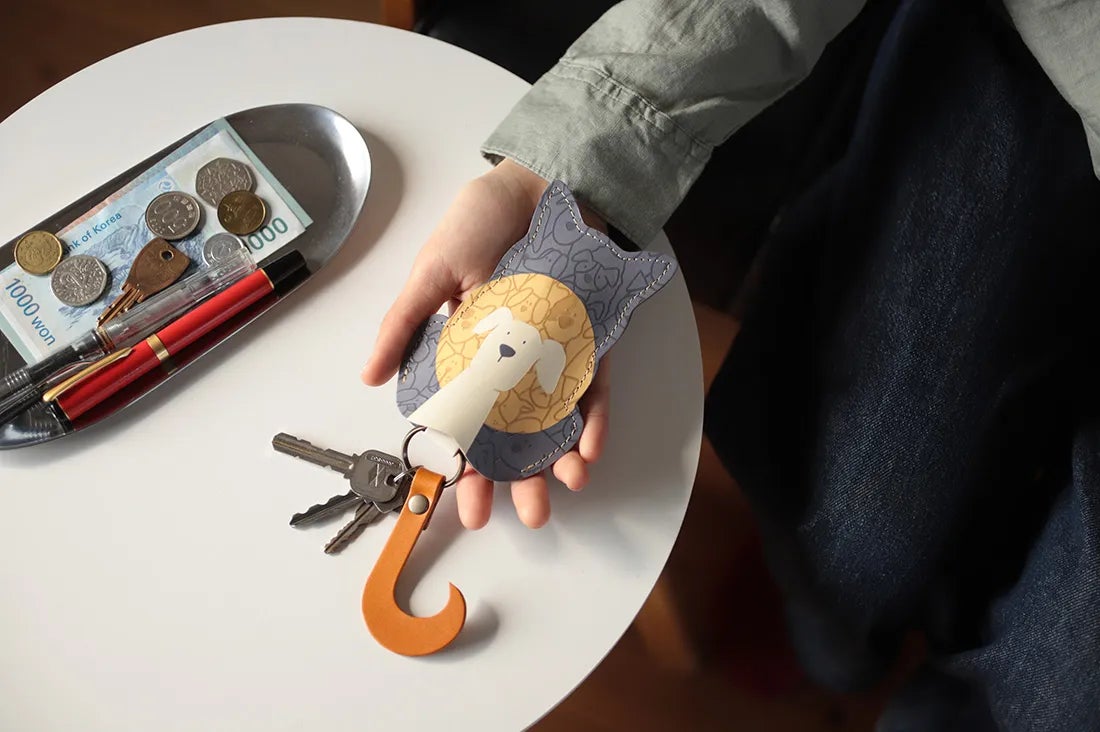 5/13”愛犬の日”記念。しっぽを引くとカギが出る。犬と満月をデザインした本革キーケースが発売。