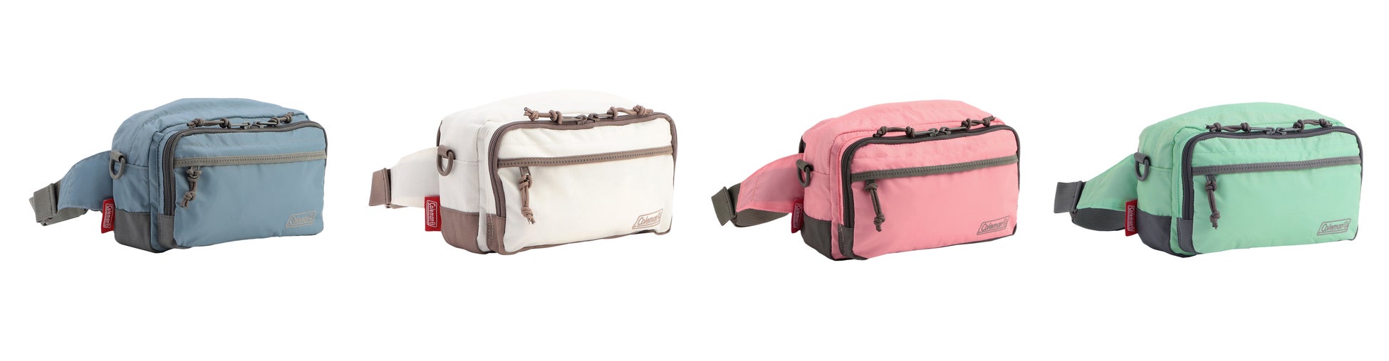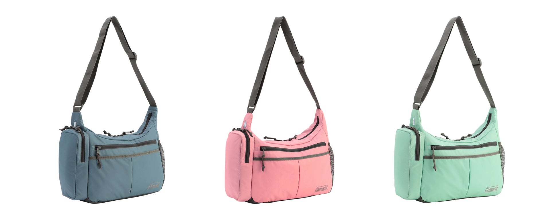 軽いハイキングなどに最適なボトルクーラーポケット付きショルダーバッグ「クールショルダーMD」には、「ビンテージブルー」「ストロベリー」「ターコイズ」の3つの新色が登場。