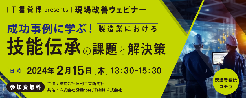 2/15日刊工業新聞社主催『[工場管理presents]現場改善ウェビナー「成功事例に学ぶ!製造業における技能伝承の課題と解決策」』