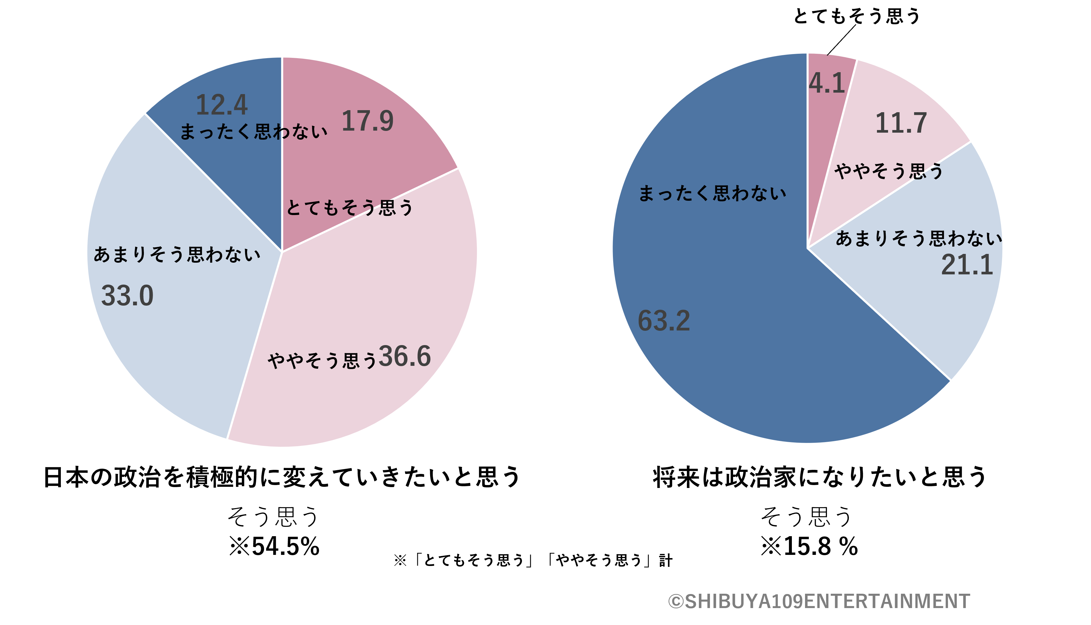 また、「日本の政治を積極的に変えていきたいと思う」という質問に「そう思う」と回答したのは54.5%と半数以上になったものの、「将来は政治家になりたいと思う」という回答は15.8%※図14にとどまり、グループインタビューでも、「自分はキャラじゃないので、政治家にはなりたくない」といった声のほか、「企業からの働きかけでも政治を変えられると思うので、企業人として声を挙げたい。自分が発起人になるかはわからないが、将来所属する企業で社会問題に関する活動があれば参加する」という、企業側から世の中を変えようと思う声や「政治家にはならない。結局政治家になっても、世の中は変えられないと思う」など、政治家への低い期待値を感じさせる意見など、様々な声が聞かれました。