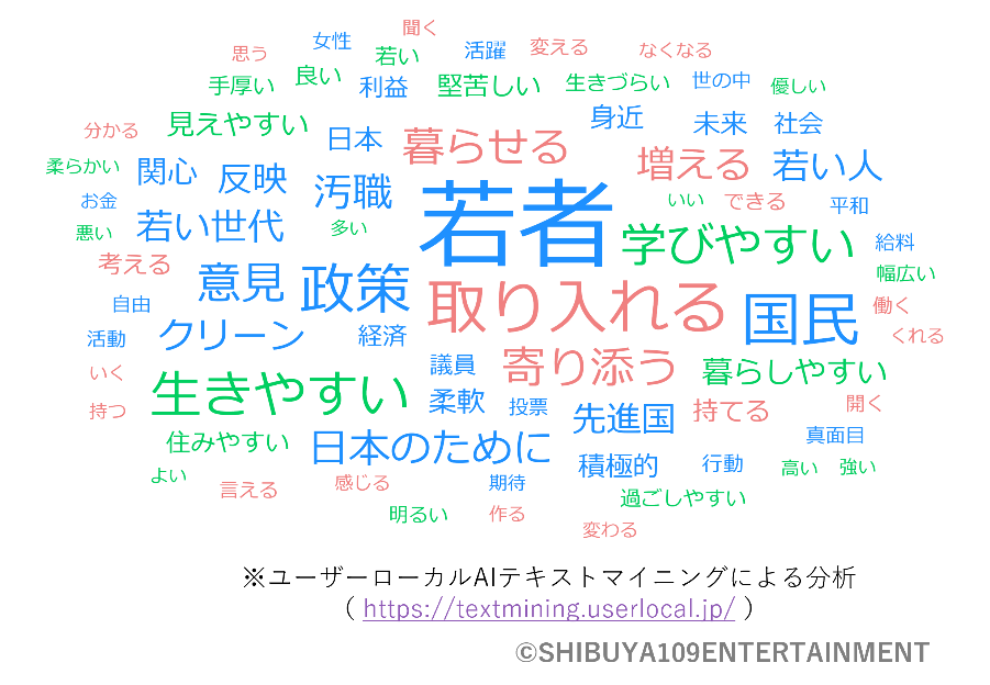※「(~して)欲しい」「政治」という言葉は取り除きテキストマイニングをしています。
