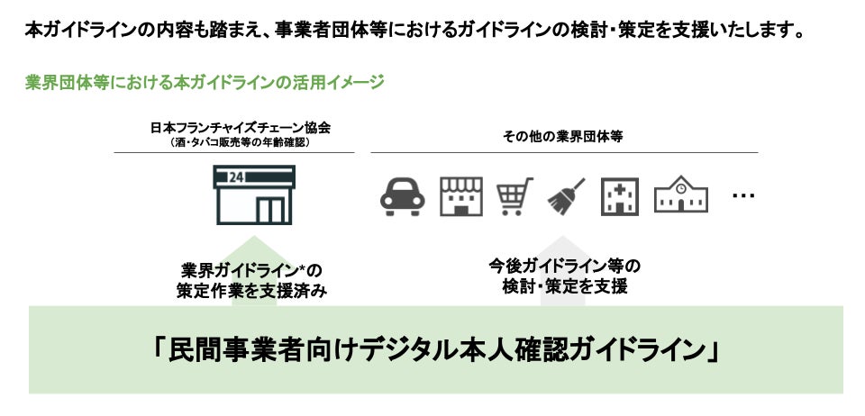 一般社団法人日本フランチャイズチェーン協会は、「デジタル技術を活用した酒類・たばこ年齢確認ガイドライン」の策定に当たり本ガイドラインを参考にしていただいています。(※1)