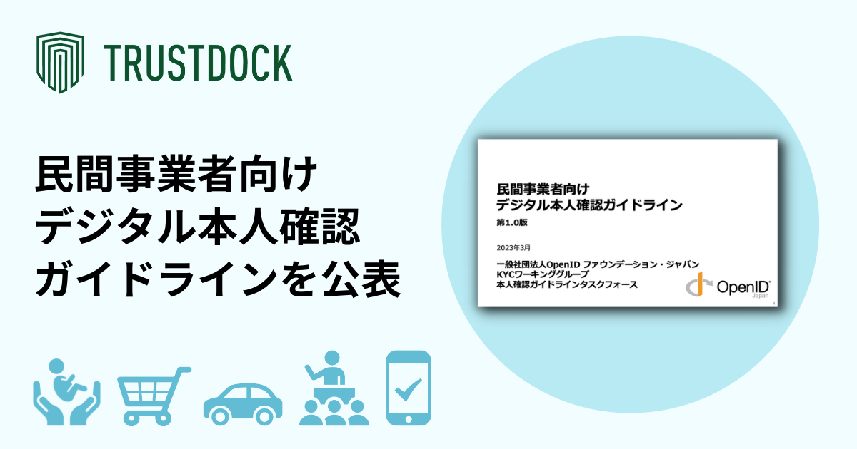株式会社TRUSTDOCK(本社:東京都千代田区、代表取締役:千葉 孝浩、以下 TRUSTDOCK)は、一般社団法人OpenIDファウンデーション・ジャパン(以下、OIDF-J)より「民間事業者向けデジタル本人確認ガイドライン」(以下、本ガイドライン)を公表したことをお知らせします。