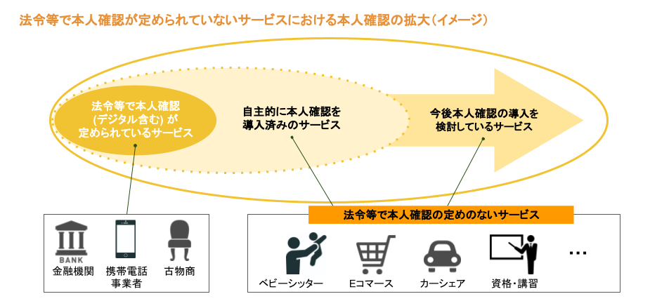 本人確認が必要なサービスは、「法令等で本人確認について定めのあるサービス」と「法令等で本人確認について定めのないサービス」に分類されます。前者は、犯罪収益移転防止法などによって、本人確認の方法や使用できる本人確認書類などが規定されています。一方、後者には、本人確認に特化した横断的なルールや基準が存在しません。