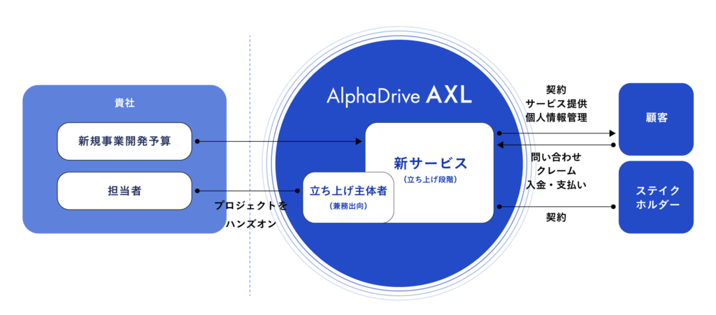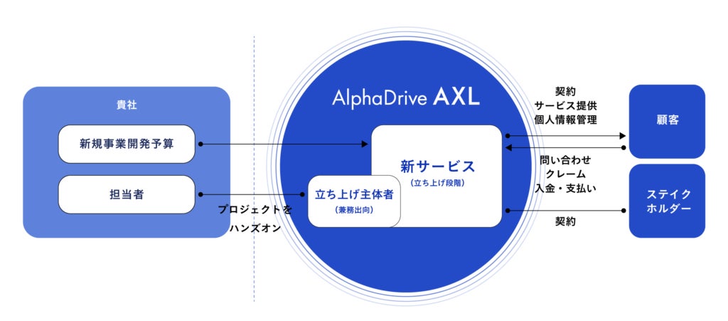 大企業本体の中で事業の立ち上げが難しい場合に、企業の新規事業開発を多角的に支援してきたAlphaDriveのノウハウを活かし、「新規事業の立ち上げに適した環境」を提供するものです。AlphaDriveは、以下のような課題を解決します。