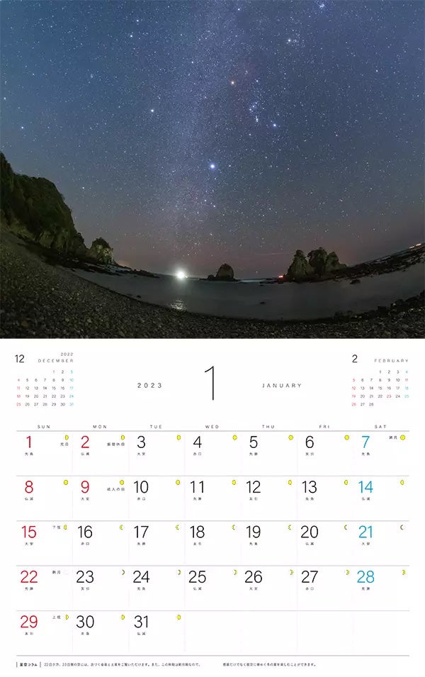 各月の星空や2023年の天体イベントについてのコラムも掲載。