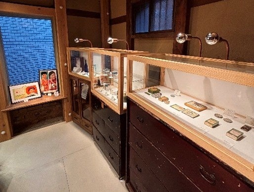 CuteGlass Shop and Gallery内のギャラリーショーケースにて、仁丹シリーズの歴代ガラス容器やパッケージなどを展示します。