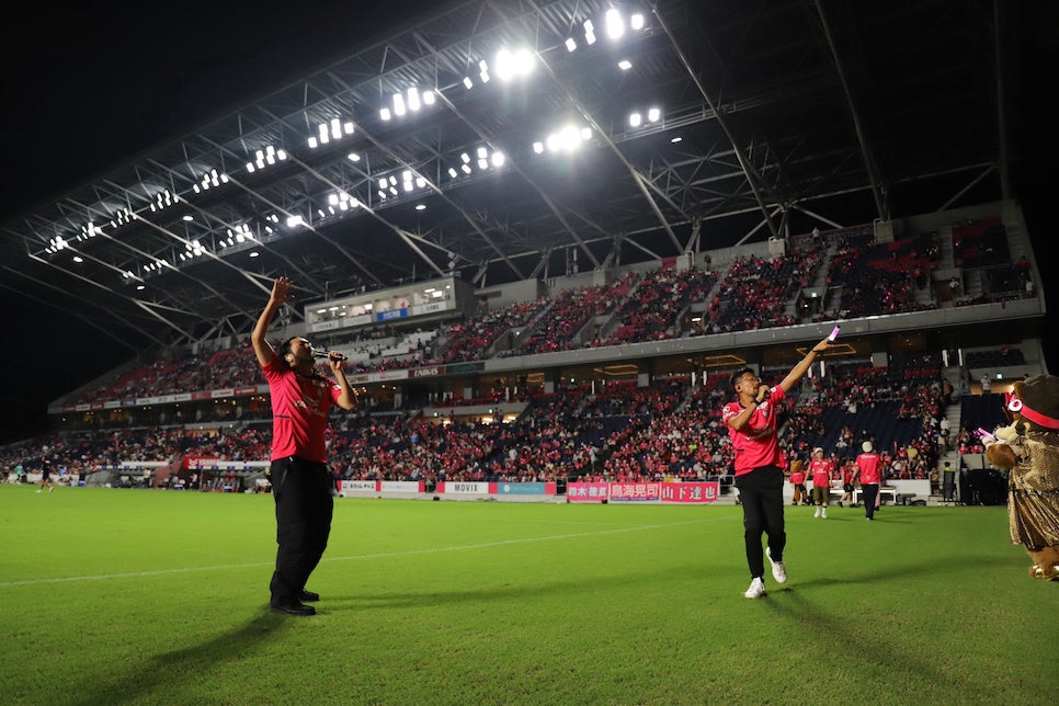 2年連続の来場。まだまだ暑さが残る夏の夜でしたが、暑さを吹き飛ばすほどのパフォーマンスを披露いただきました。今回はピッチレベルでのパフォーマンスを実施。