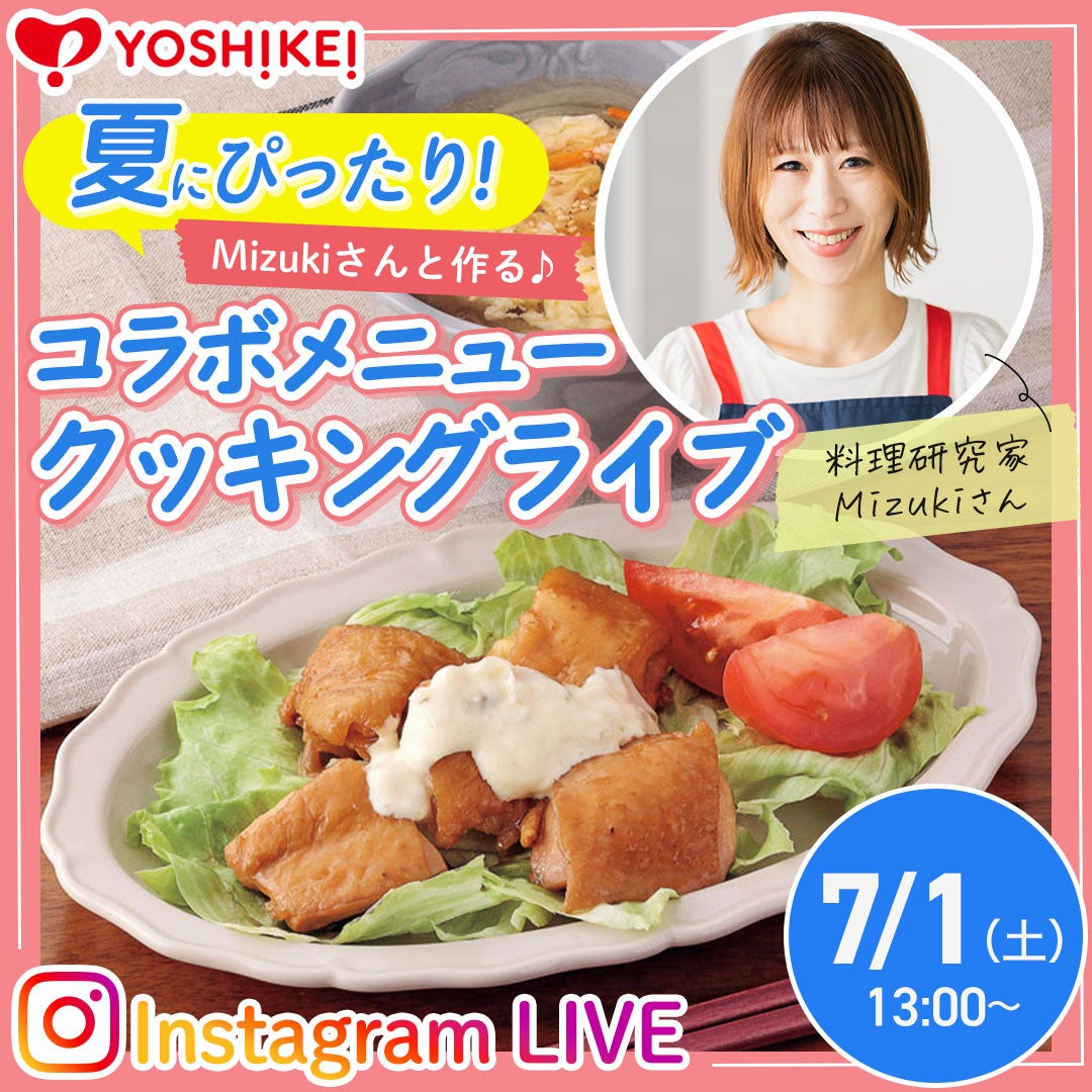 内容:Mizukiさんご本人が出演し、コラボメニューをライブでクッキング♪ライブ中は視聴者からのコメントや質問にも回答します。
