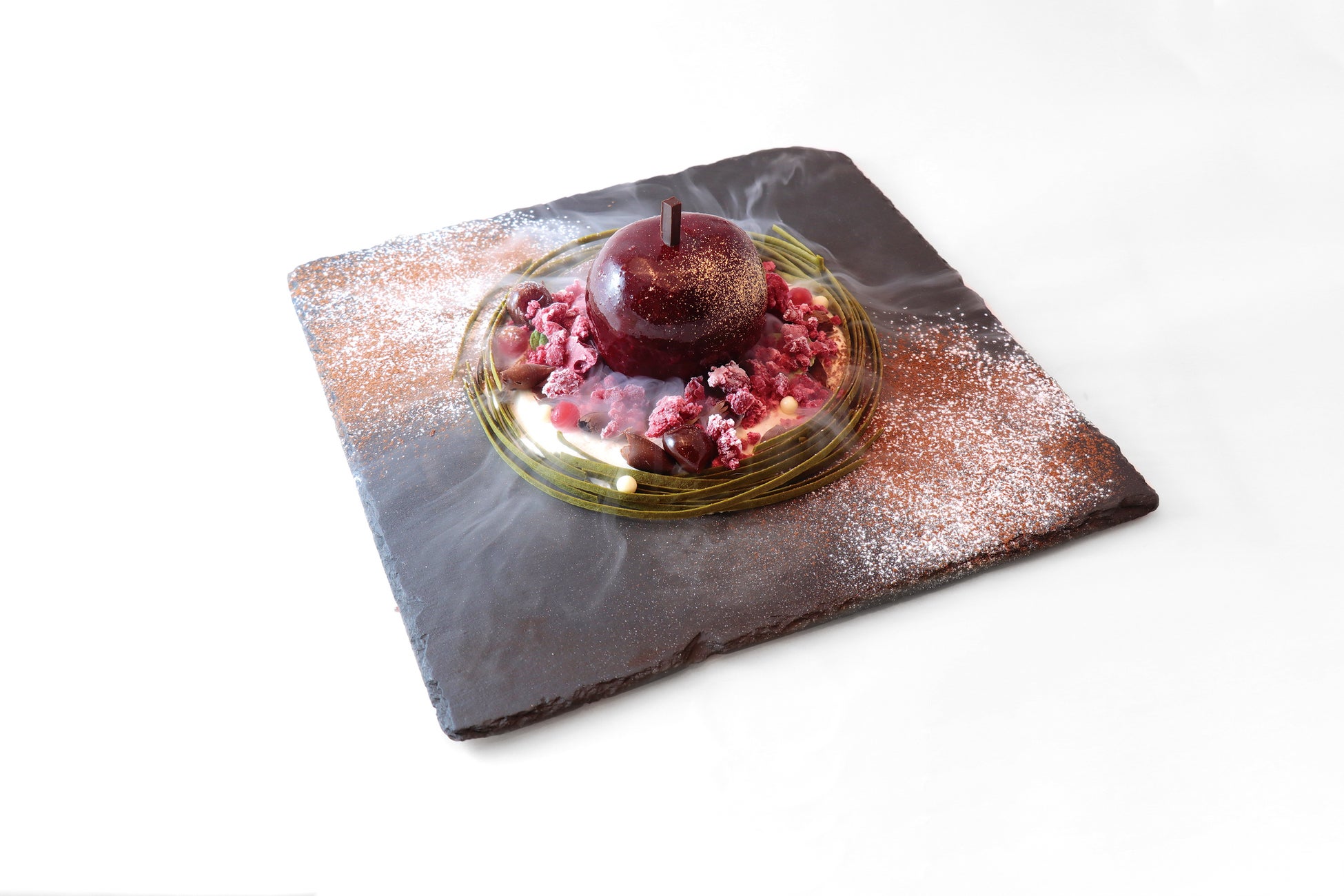 お客様の前で液体窒素のシャーベットを添えさせていただきますが、その際は黒い森に霧がかかった物語のワンシーンの様な光景をお楽しみいただけます!