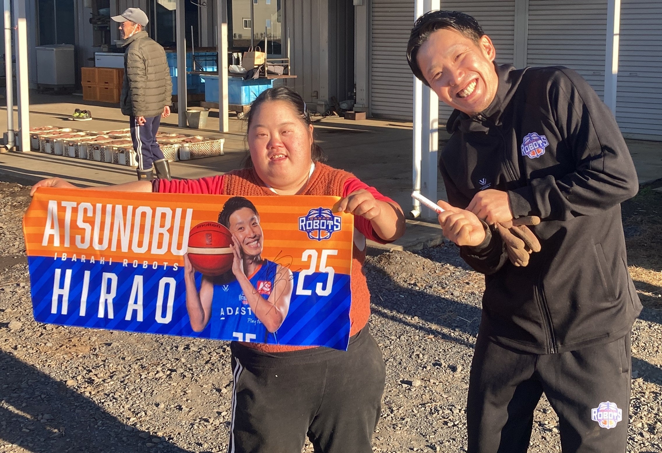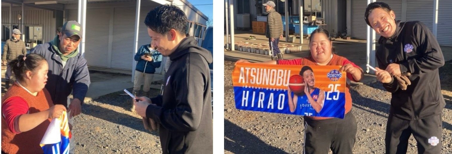 利用者の方は茨城ロボッツの試合を見に来たことがなく、平尾選手が「試合観に来てね !」と声をかける場面もありました。