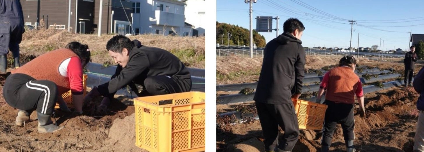 現地ではトラクターに乗って畑を耕したり、就労者の方と一緒に芋掘りを体験させて頂きました。