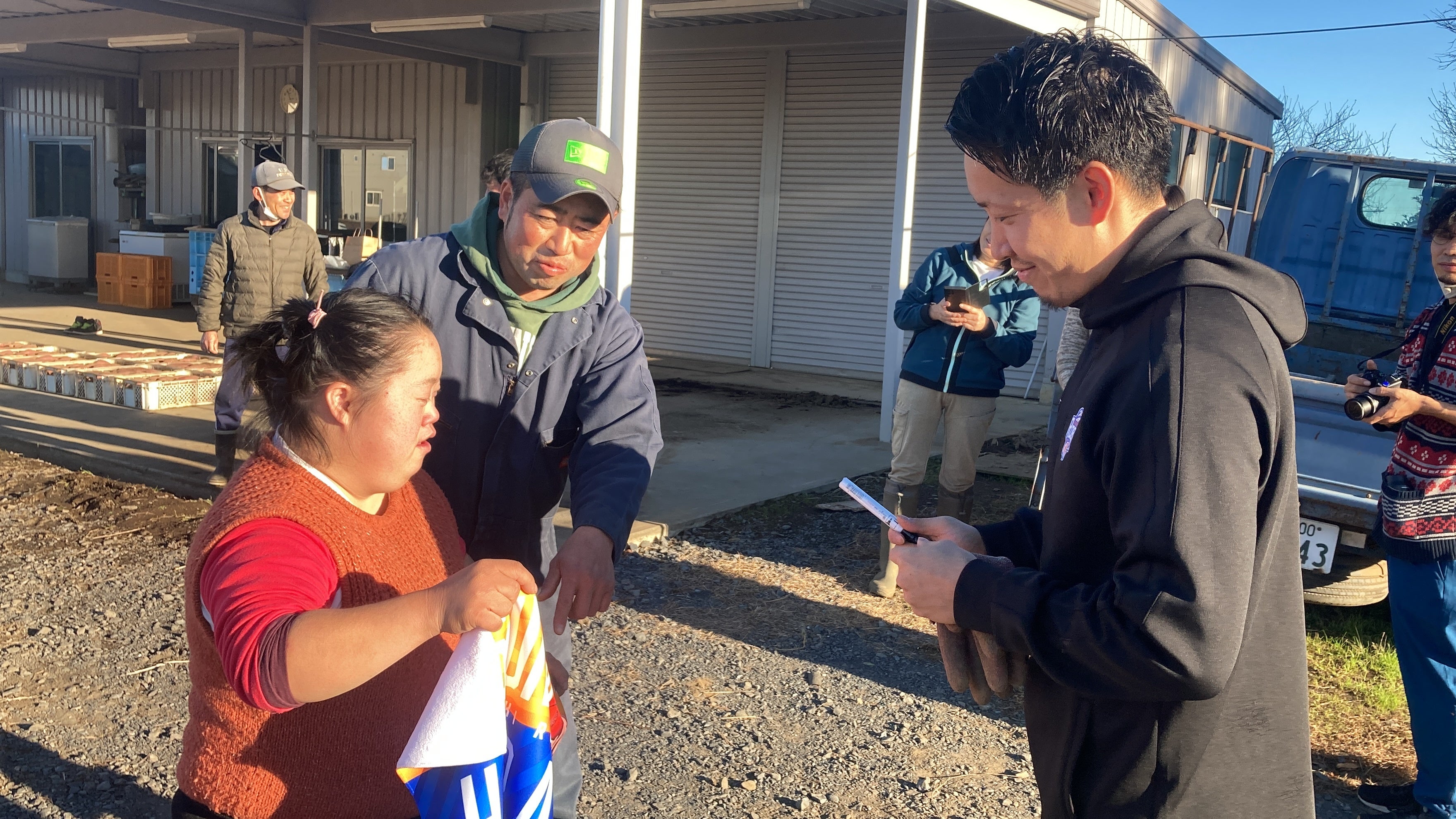最初は緊張していた利用者の方も、最後には平尾選手やスタッフにも焼きたての焼き芋をプレゼントしてくださり、その場にいる全員が元気をもらいました。