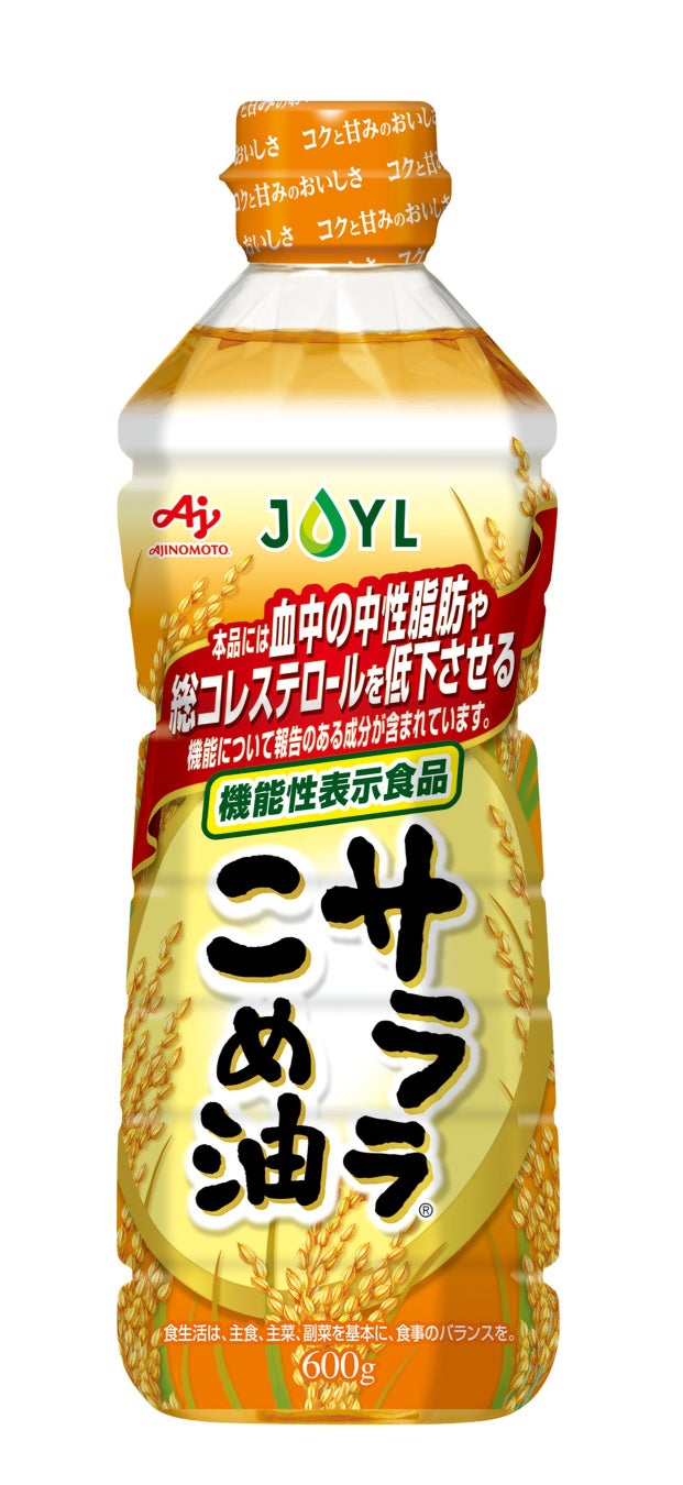 血中の中性脂肪や総コレステロールを低下させる機能について報告のある成分を含む機能性表示食品 JOYL「AJINOMOTO サララ®こめ油」を新発売