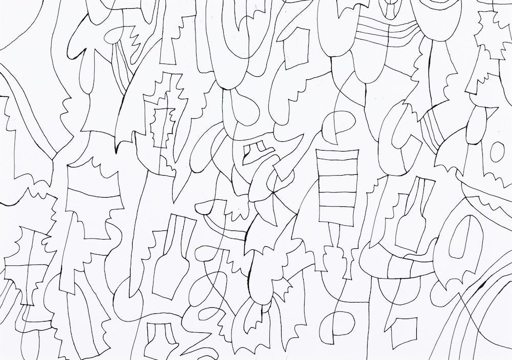 ある時はふわふわと、夢見るように周囲の誰かに笑顔で話しかけていたり。またある時は、一人自分の内側の世界に深く意識を沈めていたり。工藤のまなざしは、彼女の心だけに映る何かを追いかけてたゆたう。 心を満たす幸福なイメージが浮かぶのか。それとも痛みや悲しみを心に映さないようにするためなのか。それとも。工藤の制作は、瞑想から生み出されるような果てしなさがある。自分が今なにかを作り出しているという意識はあるのだろうかーー。彼女が描く時、縫う時、あるいはよくわからない「なにか」をしている時。ふとそんな疑問を感じさせる、不思議な空気が彼女の制作には漂っている。