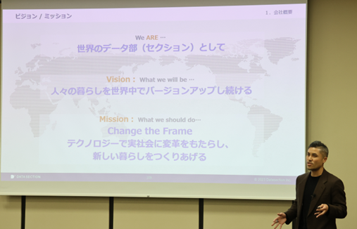データ分析の専門家として、テクノロジーで実社会に変革をもたらし、新しいくらしを創り上げる、というビジョンで創業し、技術×グローバルというキーワードで事業を展開しています。日本企業は国内市場を獲得し次にグローバル進出を検討することが多い一方、韓国や東南アジアの企業は、初年度に自国でサービスを立ち上げ、翌年度にはグローバル市場に進出する会社が多い。当社は、日本企業の技術力には、グローバルに展開できるポテンシャルがあると考え、日本の技術力のグローバル展開の推進を支援しています。