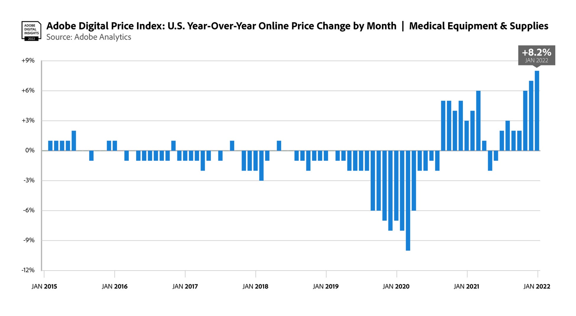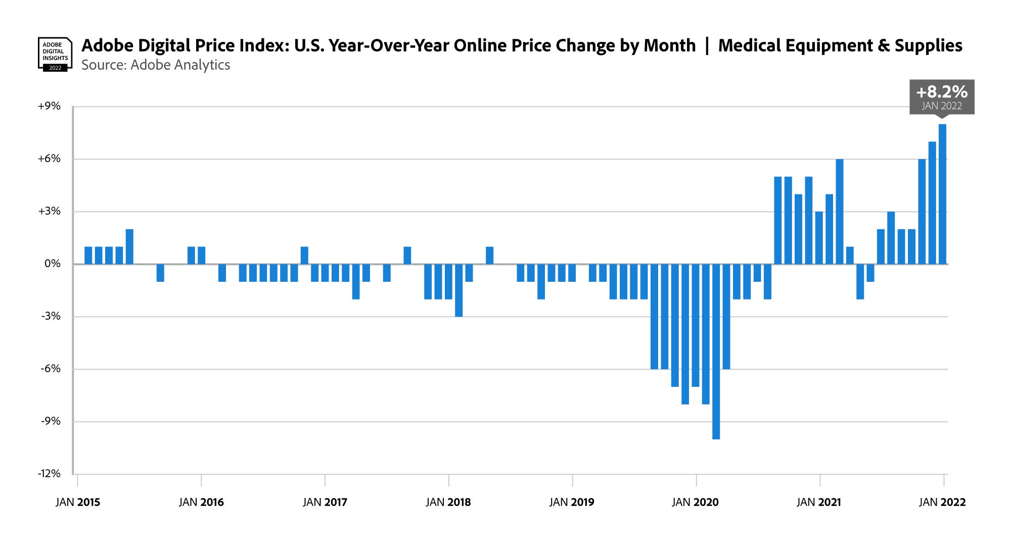 - 2022年1月時点で、オンライン価格は20か月連続のインフレ傾向に