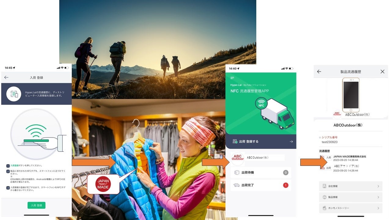 HyperJ.aiは、アウトドア用品業界における信頼性と真正性の確保において、次のような役割を果たします。まず、製品一つ一つにユニークなデジタルIDを割り当て、スマートフォンをかざすことで、製品の真正性をその場で確認できるシステムを提供します。これにより、消費者は登山用具やキャンプギアなどの製品が正規品であるかを瞬時に判断でき、偽造品の購入リスクを回避することができます。さらに、ブランドストーリーをブロックチェーン上に保管し、消費者に対して製品の背景や技術、品質に対する企業のこだわりを直接伝えることが可能になります。