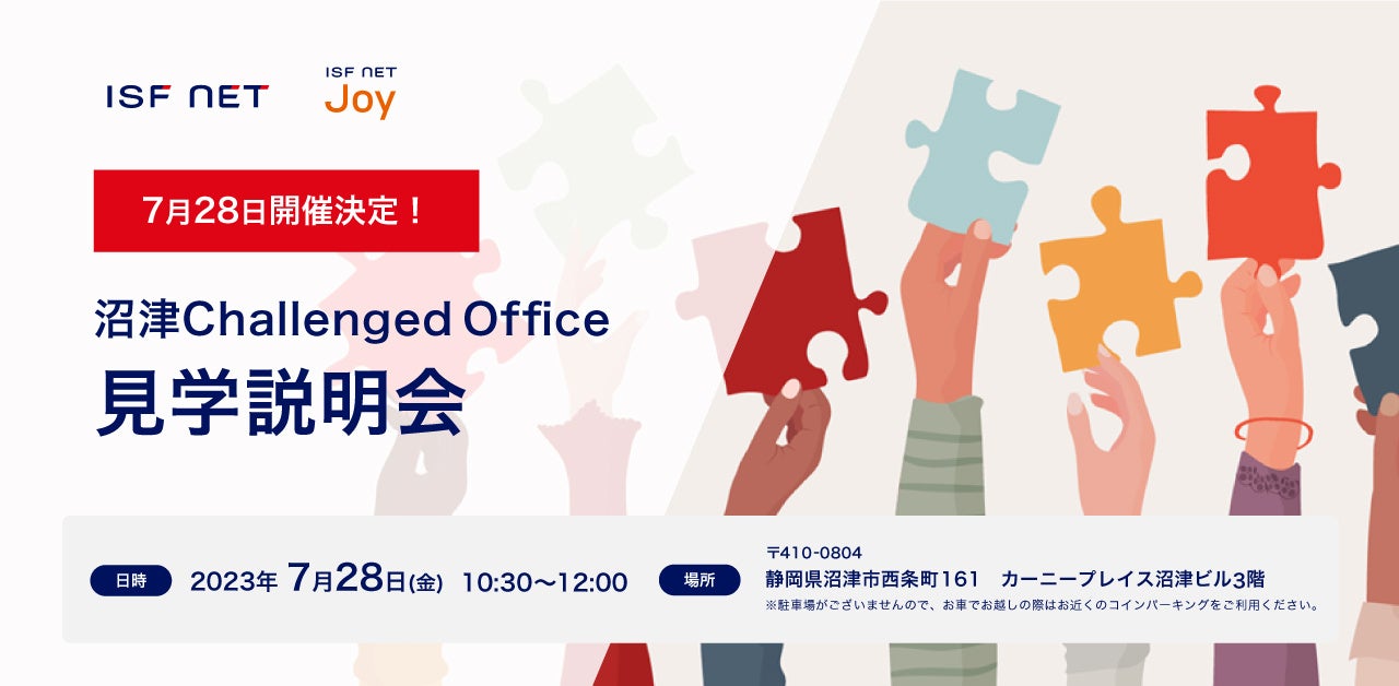 2023年7月28日(金)に株式会社アイエスエフネット 沼津支店にて、チャレンジドオフィス見学説明会を開催し、障がい者雇用のポイントや課題についてご説明します。