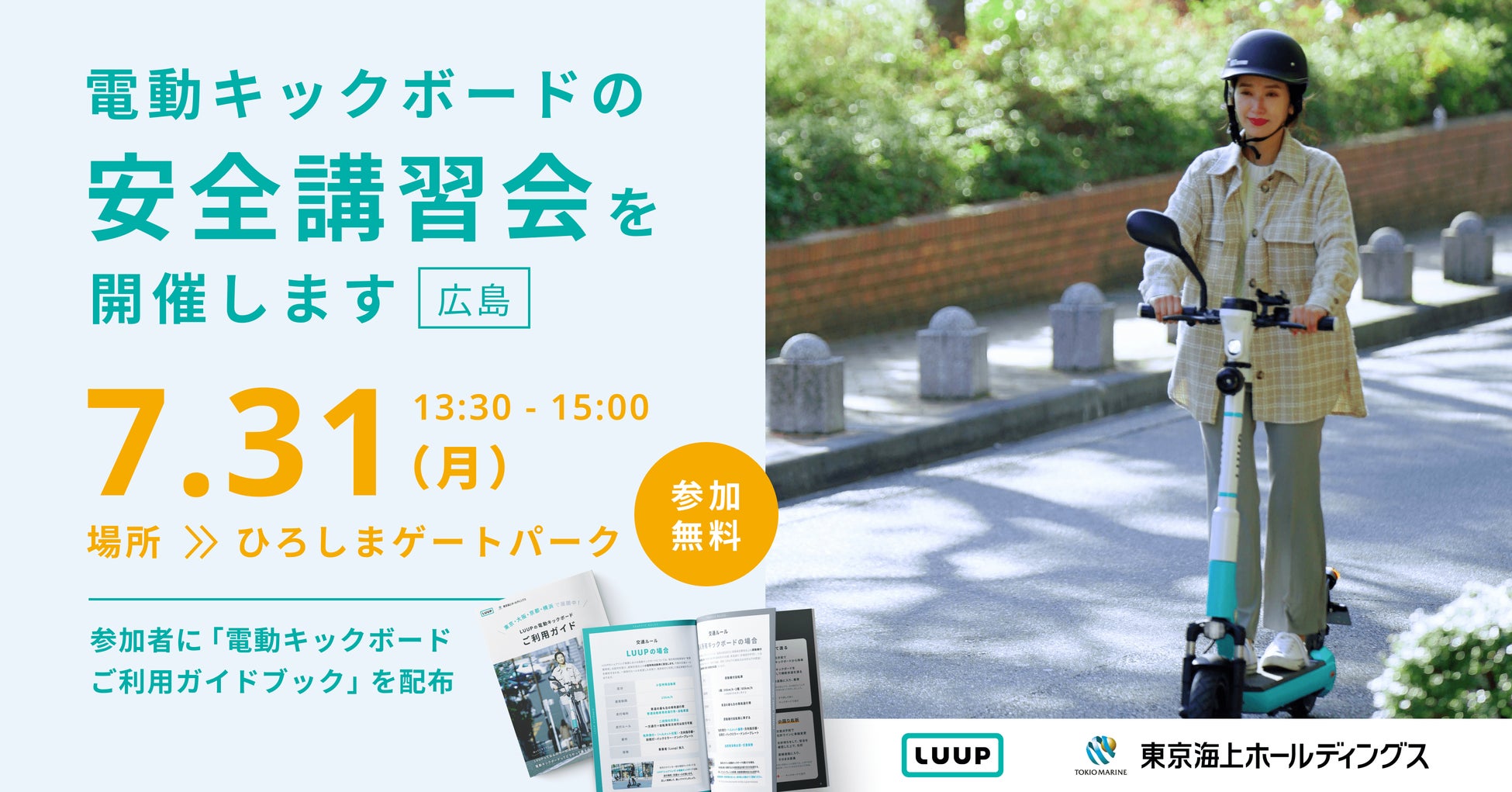 広島エリアでのサービス提供開始にあたって、電動キックボードの安全講習会を2023年7月31日(月)に「ひろしまゲートパーク」にて開催します。当日は、担当者へのご取材やイベントの撮影が可能です。