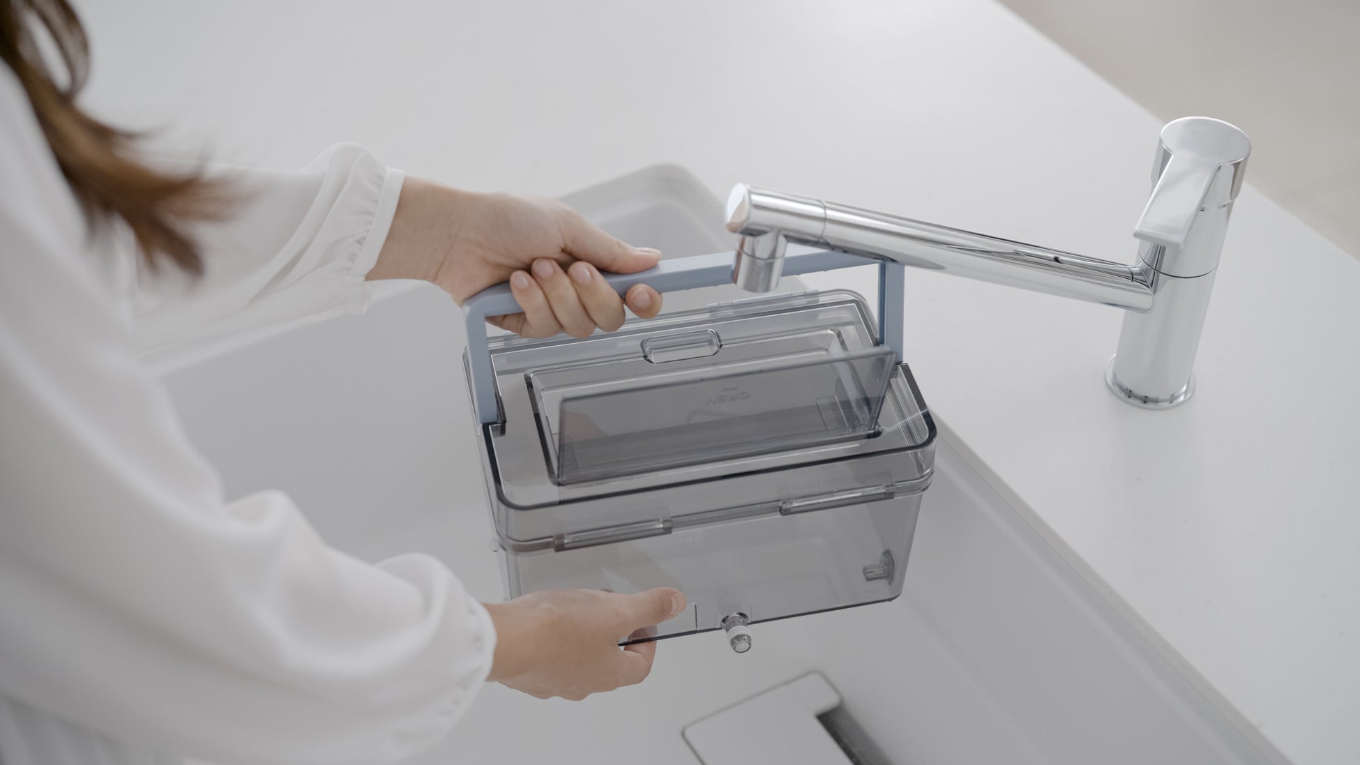 水道水をタンクに注ぐだけで、重いボトル交換や、注文の手間が不要。プラスチックごみも出ません。