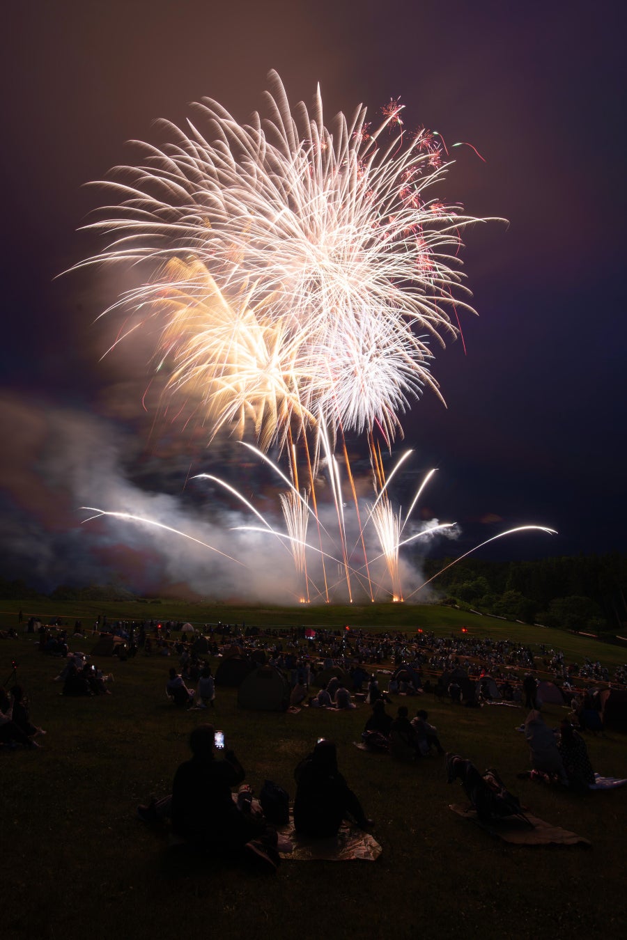先人達への感謝を込めた白い花火の後は、山下穂尊が作詞・作曲をし、フェスのキュレーターの本間昭光と島田昌典が編曲を手がけたフェスのテーマソング「輝き」に合わせたミュージックスターマインが次々と打ち上がった。美しい花火と共に、子供たちの合唱がこだましていた。