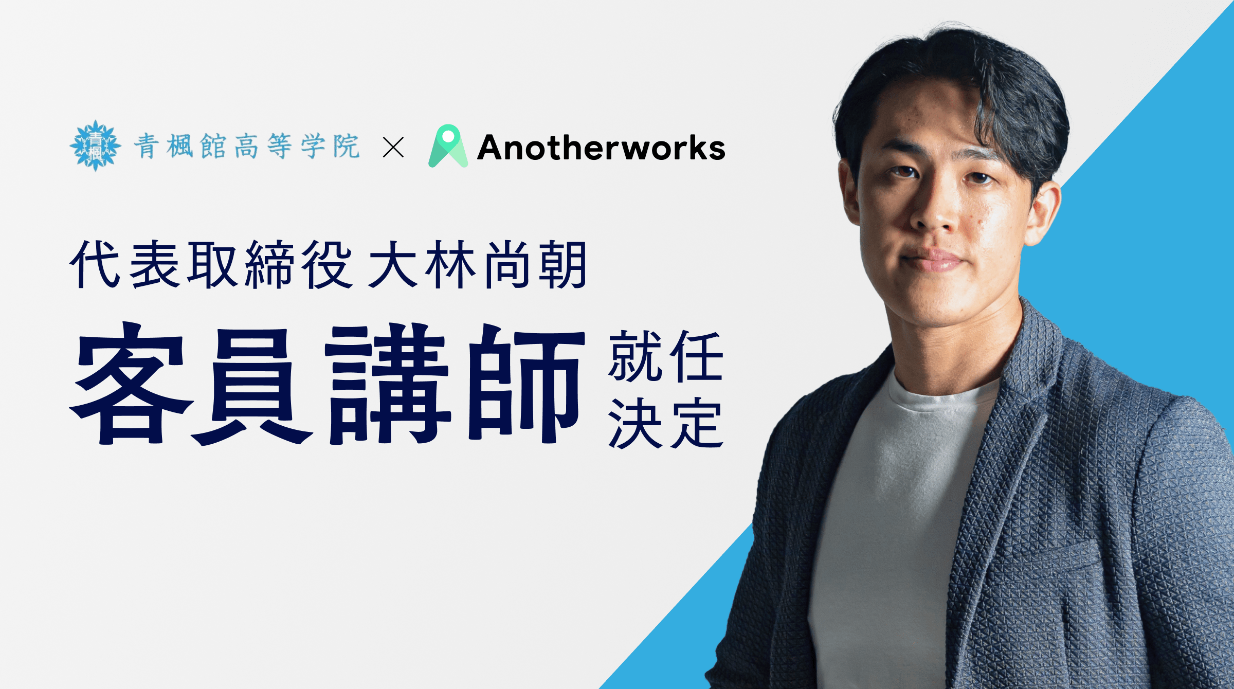 そこでこの度青楓館では、「社会がつくる学び舎」にしていくために、自らキャリアを切り開いた社会人が学校に参画する「特別講師」「客員講師」が設けられることとなりました。Another worksからは大学時代から一貫して人材ビジネスに携わり、26歳で起業した代表取締役の大林が客員講師として就任することとなりました。