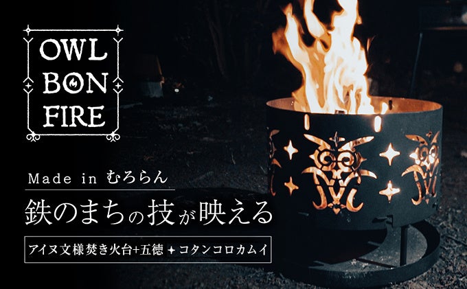 令和4年度の最需要期である12月に向けて新たに登場した返礼品としては、人気のひとりキャンプにもぴったりな地元のモノづくり企業ならではのアイテム「アイヌ柄 焚火台 と 専用五徳」。薪に火が付くとアイヌ文様のフクロウの姿が浮かび上がる鉄のまちの技が映える高い技術と経験を注ぎ込んだオリジナルの焚き火台です。全国のキャンプファンに室蘭市の技術を感じていただければと思います。