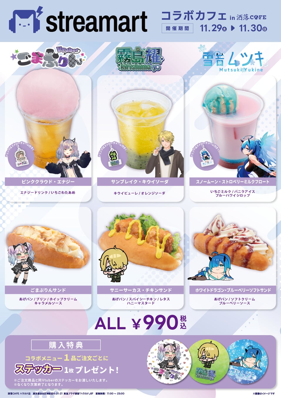 「streamart」Vライバー ごまぷりん / 霧島耀 / 雪音ムツキ 洒落カフェハラカドコラボ - 11月29日(土)・30日(日)の2日間限定で開催!