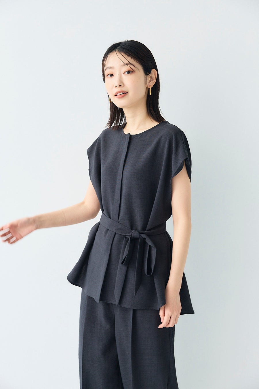サマナチュラ リネンライクベルト付きフレンチスリーブブラウス