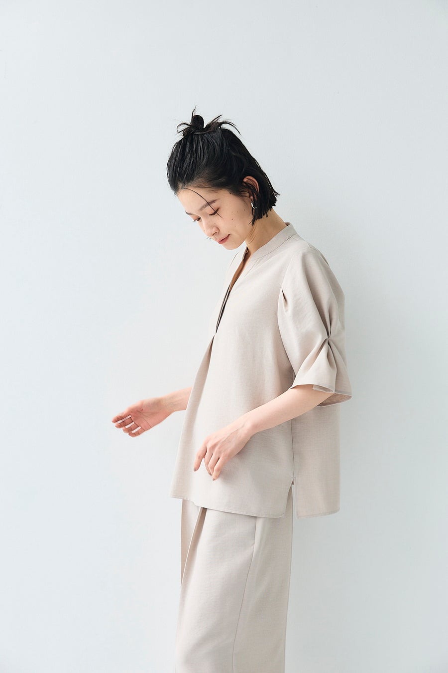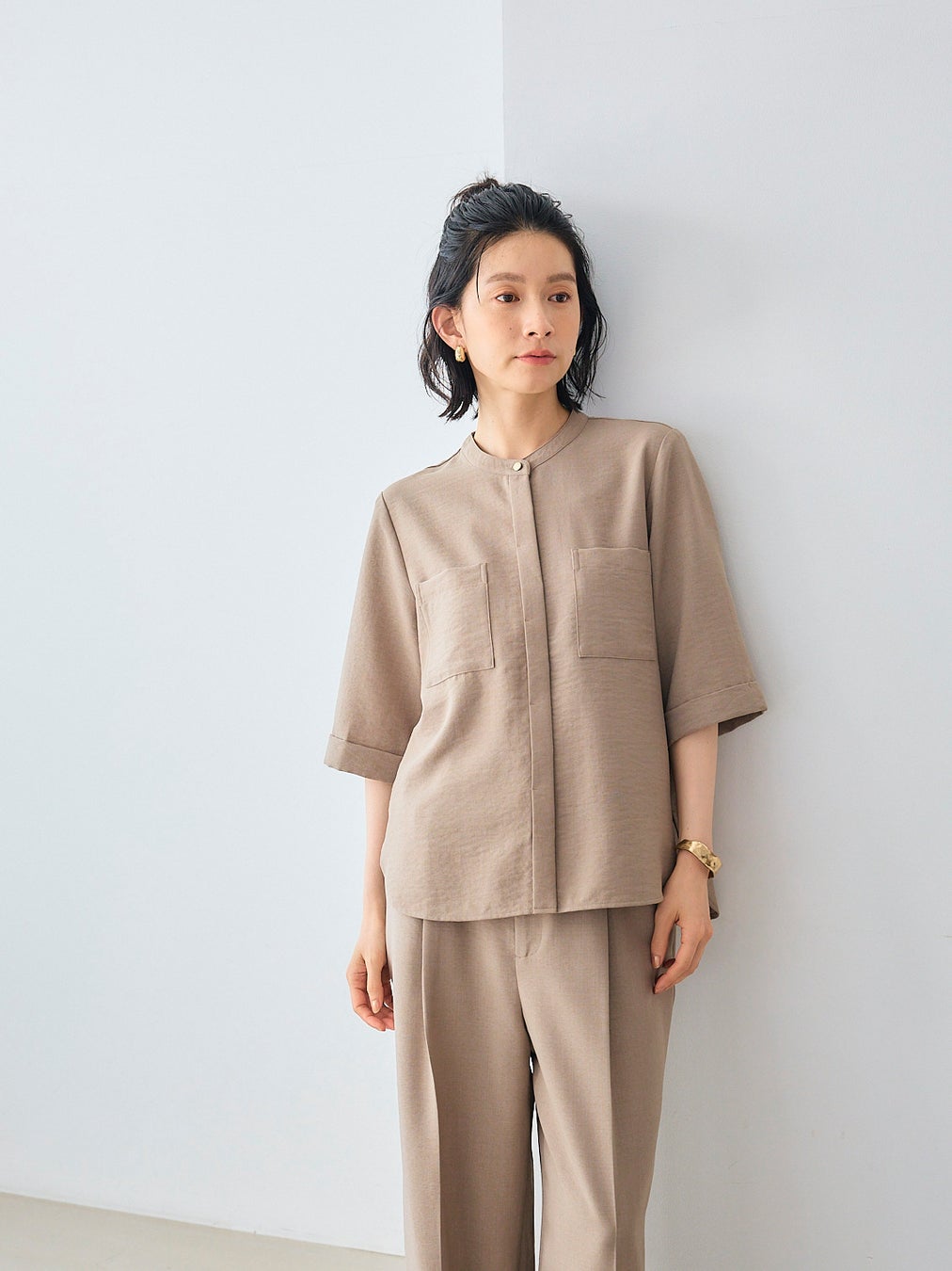 ・URL : 《シワになりにくい》サマナチュラ リネンライクバンドカラーハーフスリーブブラウス CROSS FUNCTION|クロスプラス公式通販サイト