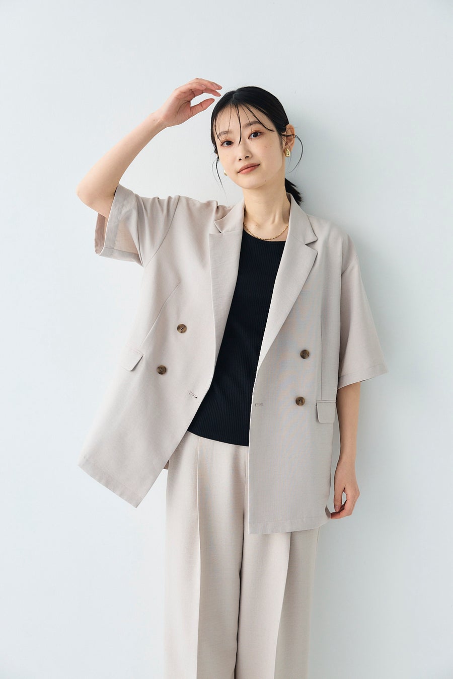 サマナチュラ リネンライクハーフスリーブテーラードジャケット