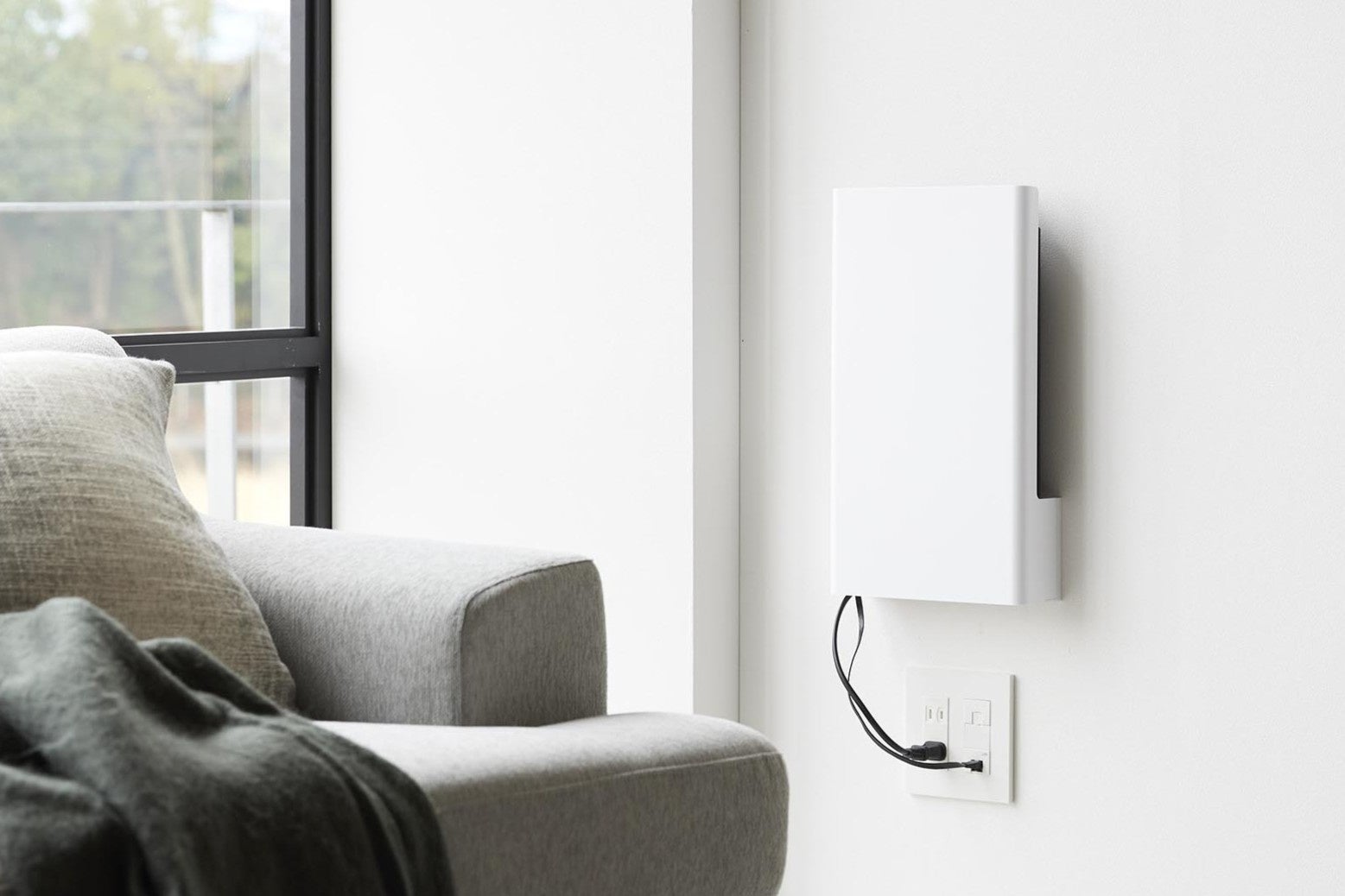 壁の穴が目立ちにくい石こうボードピンでベースを取り付け、本体を差し込むだけの簡単設置。