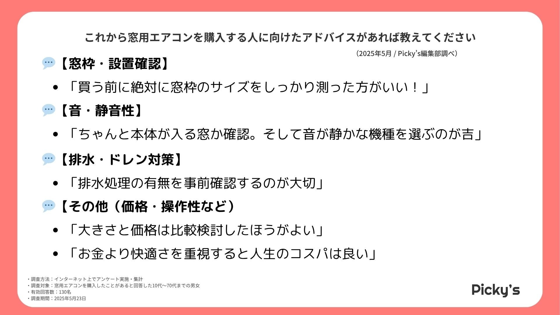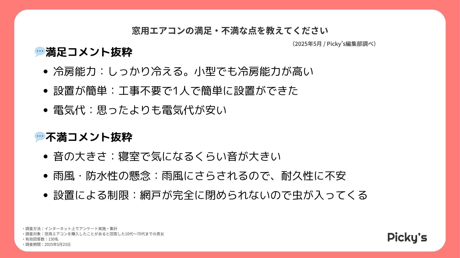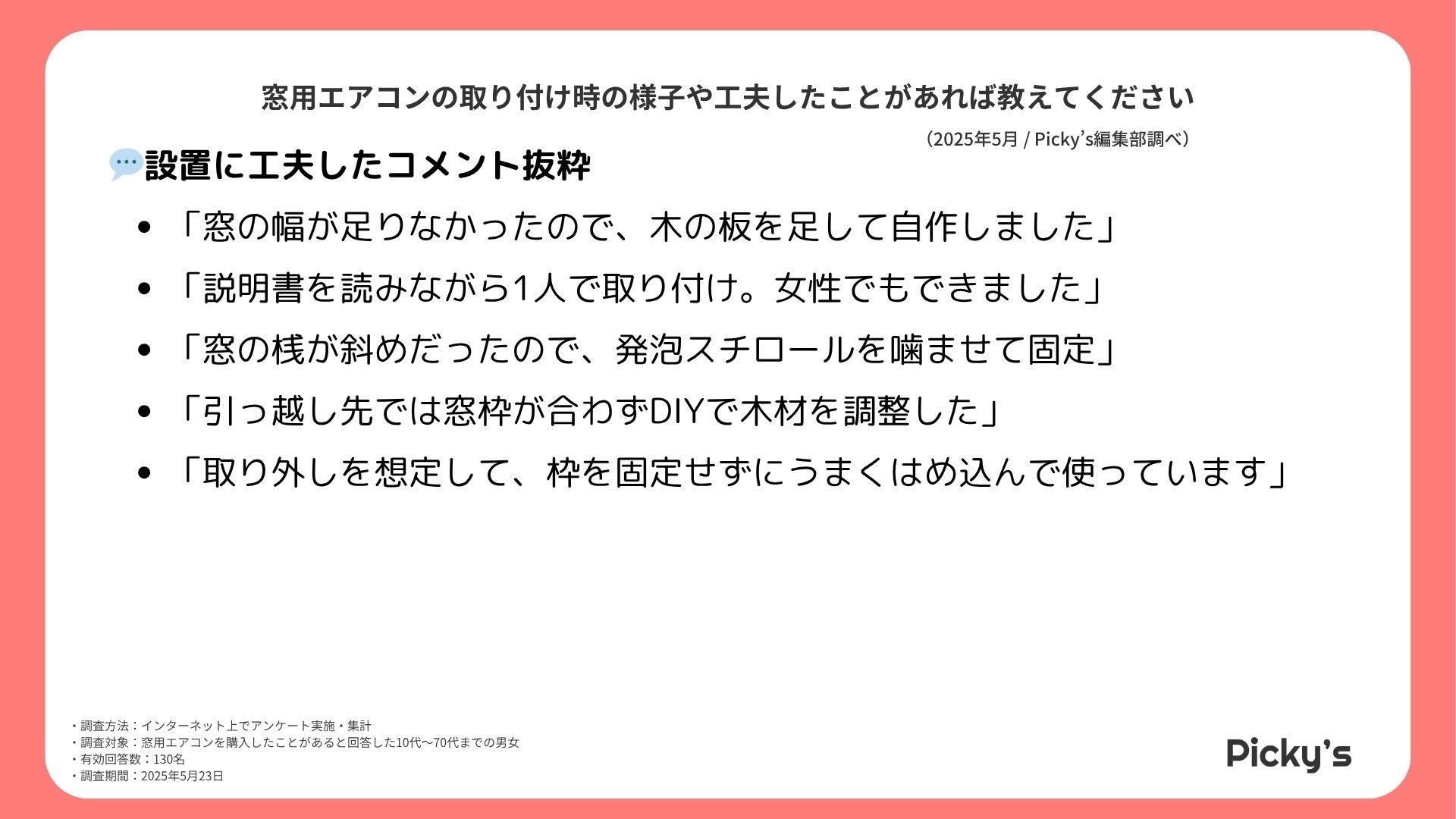 このたびPicky’s(https://picky-s.jp/)およびPicky’s Life(https://pickys-life.jp/)では、インターネット上で窓用エアコンに関するアンケート調査を実施し、その結果を発表します。